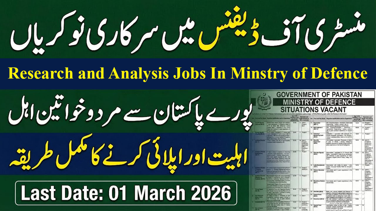 The position of Assistant Director (Research & Analysis) (BS-17) is a high-level analytical role within the Ministry of Defence designed for individuals with exceptional critical thinking and investigative skills. As a Grade-17 officer, you will be responsible for evaluating complex data sets, identifying security trends, and producing actionable intelligence reports that directly influence national security strategies. Last date for apply 1 March 2026.